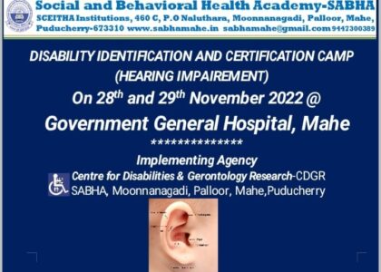 മാഹി : സോഷ്യൽ ആന്റ് ബിഹേവിയർ ഹെൽത്ത് അക്കാദമിയുടെ കീഴിലുള്ള ഭിന്നശേഷിക്കാർക്കും മുതിർന്ന പൗരന്മാർക്കുമായി പ്രവർത്തിക്കുന്ന സെന്റർ ഫോർ ഡിസേബിലിറ്റിസ്